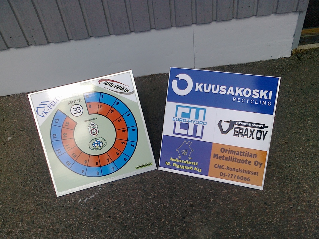 Uudet tulostaulut saivat sponsorit ja taulun takaosat on teipattu! Ohessa kuva uusista tauluista joita on 15 kpl ja ne ovat numeroitu 31-45.