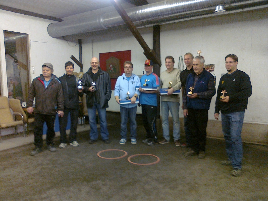 "Rakas Petanque päiväkirjani... 24. Marraskuuta oli saapunut 60 Petanque pelaajaa ympäri Suomen Iittalan Iskuarenalle mittelöimään Finnish Friends 2012 ja MJ100 kilpailun paremmuudesta. Kilpailun tarkoituksena oli juhlistaa kahden Bitankki pelaajan 50 vuotisjuhlia eli Jouni Heinosen ja Mikko Mäkisen. Pari valjakko olikin luonut upeat puitteet kilpailulle ja tarjoilu oli ensi luokkaista, tunnelmasta puhumattakaan. Joukkueiden valinta oli mennyt niin että järjestäjät oli nimennyt neljä joukkuetta ja 16 kapteenia, jotka muodostivat itse joukkueensa. Näin ollen kilpailuun osallistui 20 joukkuetta neljässä viiden lohkossa. Karkkilan kapteeniksi oli pyydetty Marko Taipalvesi ja joukkueen koonti vastuu oli hänellä. Marko valitsikin joukkueeseensa Jyrki Salon, sekä Loimaalla loistavan, Suomen terävimpään kärkeen kuuluvan Seppo Lindmanin. Joukkue aloitti turnauksen hapuilevasti, ainoa pelaaja joka oli tasollaan oli Seppo. Sepon taktinenmuutos alkupeleissä ja ennakkoon poikkeavasta peluutusjärjestyksestä oli että Marko asetti, Seppo ampui ja Jyrki pelasi keskipelaajana. Jyrki kammoksui pelipaikkaansa ja Markon asetukset karkaili nopealla alustalla ihan mihin vaan. Alkulohkon viimeisessä pelissä jatko oli sitten katkolla. Joukkueen saldo oli siihen mennessä yksi voitto ja kaksi tappiota, vain voitto viimeisestä ja paremmalla tuloksella kuin 13-3 voi viedä joukkueen A-sarjan finaaliin. Viimeisessä alkusarjan pelissä kohdattiin aina vaarallinen Valkeakosken naisjoukkue. Joukkueemme aloittikin vahvasti ja oli kuin uudesti syntynyt. Jatkon kannalta mielessä pidetty "death line" 13-3 oli raja johon tähdättiin. Hyvinkin nopeasti Sepon ammunnat toivat yliotteen joukkueellemme ja voitto kirjattiin meille 13-0 ja jatko A-sarjan finaalissa oli taattu. A-sarjan puolivälierässä tuli vastaan Sepon pelitoverin Arto Stenbergin joukkue jossa pelasivat naismaajoukkueen pelaajat Helena Kuivasniemi-Lehti ja Mirva Näsilä. Aina vaaralliset Aatu ja enkelit takasivatkin erittäin tasokkaan pelin, ainoa mikä pilasi ottelun oli että se oli aika peli ja lopputulos olikin Markon joukkueelle 11-10 60 minuutin ja yhden lisäsnadin jälkeen. Näin oli joukkueemme raivanut tiensä mitallipeleihin. Välierässä vastaan asettui sitten Haten, Laten ja "Taten" huippujoukkue eli Harri Lehtinen, Lauri Kolehmainen ja Kalevi Lehtinen. Pelin taso muodostui varmasti kilpailujen kovimmaksi. Ammunnat Sepolta ja Hatelta olivat aivan uskomatonta luokkaa ja Marko pystyi asetuksillaan luomaan sellaisen paineen että saatiin toisen ammunnat heti pois. Seppo ampui tässä pelissä yhden hutin ja Markon asetuksissa ei ollut yhtään yli 40 cm asetusta vaikealla kentällä ja Jyrki ampui ja asetti tosi hyvin. Kun oli pelattu 60 minuutti oli tulostaululla Markon joukkueella 9-3 johtotilanne ja ainoastaan jäljellä yksi lisäsnadi. Tilanne oli toivoton joka muuttui mahdottomaksi kuudennen kuulan kohdalla ja tällöin voitto kirjattiin Markon joukkueelle 9-3 ja paikka finaalissa varmistui. Finaalissa kohdattiin Mikkelin huippujoukkue Jari Alanen, Jouko Haajanen ja Mikko Neuvonen. Finaalista odotettiin huippu kovaa, mutta nyt oli Markon, Jyrkin ja Sepon taso niin paljon muita korkeammalla ja itseluottamus katossa ettei vastustajalle annettu mitään mahdollisuuksia. Peli päätettiinkin hiukan leikitellen Jyrkin ja Sepon ammuntoihin, niin että vastustajalla ei ollut kentällä yhtään kuulaa ja meillä oli yksi kädessä ja neljä pistettä kentässä. Lopputulos kirjattiinkin tylysti 13-0. Näin oli Petanque urani yksi hienoimmista päivistä takana, kova turnaus voitto, hienot pelikaverit Jyrki ja Seppo, sekä hyvä fiilis. Aamulla lähdettiin kohti Hyvinkäätä 7.15 ja kotona oltiin 22.20!..." -Marko- |