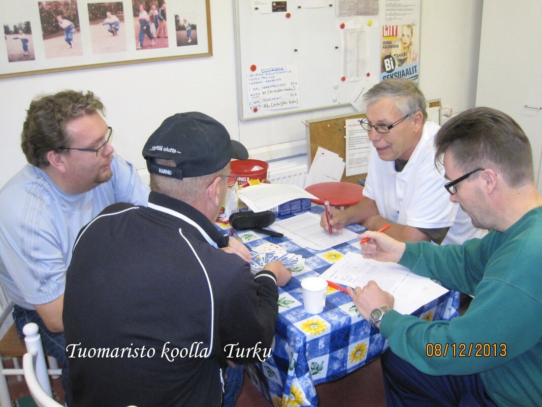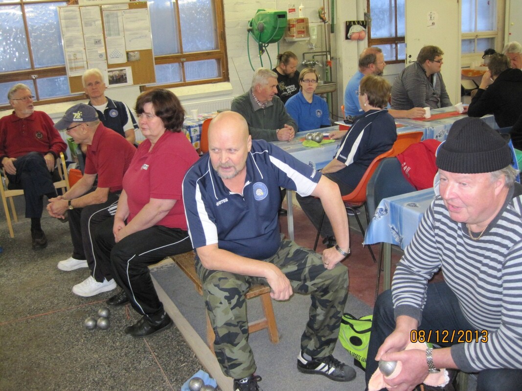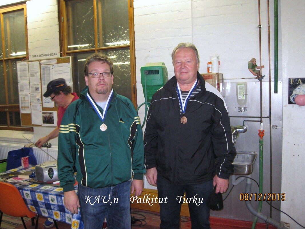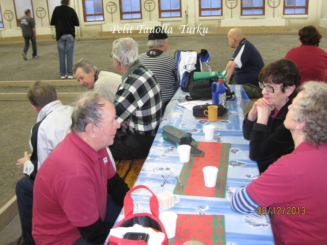 Joulukuun 8. päivä ja KAU-Petanquen seuramatka on Turkuun alkamassa. Matkalle ilmoittautui kaikkiaan 14 pelaajaa, joista muodostettiin seitsemän kovaa duppeli joukkuetta. Oli mielenkiintoista, mutta toisaalta mukava kasata joukkueiden kokoonpanot, sillä eipähän aikoihin ne ole syntynyt näin helposti ja kivuttomasti, eikä viime hetken poisjääntejä tarvinnut harmitella ja uudelleen järjestellä. Turussa meitä oli vastaan ottamassa Turun Petanque seuran ”Grand old man” Matti Halonen, joka kätteli koko autollisen pelaajia. KAU-petanquen lisäksi kilpailuun saapui 14 muuta joukkuetta eli yhteensä 21 joukkuetta. Seuroja oli siis edustettuna Karkkilan lisäksi, Loimaalta, Uotilasta, Euralta ja isännät Turusta. Ja olihan paikalla yksi entinen Karkkilan pelurikin Pertti Heiskanen joka nykyään edustaa Turun Petanque seuraa ja oli saanut pelikaverikseen Ville Vartiaisen. Nyt olikin siis aika punnita Pertin taidot nykyisellä kotitantereellaan. Pelimuodoksi kilpailuun oli valittu Swiss-systeemi, yksinkertaisella Buschold laskennalla. Tämä siis tarkoittaa sitä että loppulaskennassa voittojen jälkeen hyvitetään joukkueita pikkupisteiden osalta niissä tapauksissa jossa joukkueet ovat pelanneet kovempia joukkueita vastaan. Käytännössä tämä ei liiemmin vaikuta lopputulokseen vaikka pelattaisiin yksinkertaisin Swiss-pelimuoto suoraan ja tällöin onkin pohdittava onko kyseinen muotoseikka edes tulevaisuudessa tarpeellinen. Busholdien laskennan vaikeus käsipelillä lisää huomattavasti riskiä sössiä kisajärjestelyt hyvinkin pahasti, toisaalta eipähän niitä kukaan pysty kyllä päässä tarkistamaankaan. Swiss pelimuodossa on erittäin vaikea seurata muita seuran joukkueiden yksittäisiä pelejä, siten kirjoitankin jälleen omista päivän otteluista. Pelikaverikseni sain Turkuun mukaan aina luotettavan Harri Lindforsin, jonka kanssa olen useamman hyvän turnauksen urani aikana pelanut. Nyt suurimpana arvoituksena olikin pelaamattomuus, koska tällä hetkellä kotipuolessa ei ole sisäharjoittelupaikkaa ja täten Harrilla on heitot todella vähässä ennen kilpailua. Toisaalta luotin siihen että Turun pehmeät ja helpot kentät sopivat hänen heitolleen ja näin ollen lähdin luottavaisin mielin kilpailuun tavoitteena mitallipelit. Swiss-kierroksia oli määrätty pelattavaksi neljä ja näin ollen pikaisesti laskin että kolme voittoa riittää varmaan jatkopaikkaan ja kahdella voitolla tarvitaan suuri lukemaisia voittoja ja tuuria. Kahdeksalle Swiss:n parhaalle oli jatkot A-finaaliin tiedossa ja loput pelaamaan jäännös-sijoituksista. Peliaika otteluissa oli 50min + 2 snadia. Ensimmäisessä ottelussa arpa heittikin meille heti oman seuran vastustajat Timo Aution ja Timo Lingmanin, jotka olivat ensi kertaa Turun hallissa pelaamassa. Ottelu ei alkanutkaan heidän kannaltaan häävisti. Harri avasi ensimmäisen snadin reunarajan läheisyyteen ja asetti ensimmäisen täydellisen etukuulan noin 20cm snadin eteen. Timot asettivat kaksi kuula ja ampuivat yhden niin että yksikään heidän kuulansa ei ollut vieläkään edes pelialueella ja vaikka he asettivat loputkin kuulat suojaksi, niin se ei meitä hidastanut, vaan otimme heti ensimmäisestä päädystä 6-0 johdon. Peli oli näin ratkennut vastustajan epätoivoon. Loppupelin aikana Timoille yksi piste ja voitto meille 13-1. Toinen peli olikin sitten jo aivan eri planeetalta. Vastaan saatiin Meeri Käkelä ja Kari ”kakku” Randell. Varsinkin Randell pelaa todella kovalla tasolla kotikentällään ampujan roolissa. Meerillä on paketti hienosti kasassa, mutta vähäinen heittomäärä näkyy vielä otteissa, hyviä heittoja tulee paljon, mutta vielä tulee liikaa huonojakin. Peli alkoikin tasaisissa merkeissä avauspisteiden mennessä vastustajille (0-1 ja 0-1) tilanne 0-2. Kolmannessa päädyssä alkoi meillä peli kulkemaan ja 3 pistettä meille tilanne 3-2. Tilanteessa 6-4 meille tapahtui jonkinlainen notkahdus ja Randelin ammunnat takasivat heille 5 pistettä ja tilanne heille 6-9. Joillekin tämä olisi pelin sinetti häviölle, mutta laajan pelirutiinin omaava päätimme Harrin kanssa iske takaisin. Harrin hyvät asetukset takasivat sen että kahdella kuulallani kaksi poitoa takaisi meille kolmepistettä ja taasen kahdella huippu asetuksella saman kolme pistettä. Päätin lähteä ampumaan kuulat. Ensimmäinen lähti täydellä karolla jättöpaikalleen kolme sisällä. Toisellakin kuulalla poito ja jättö snadin läheisyyteen, 5 pistettä ja tilanne taasen meille 11-9. Tiesin että tämä suoritus saattaa takaa meille voiton sillä vastustajasta näki ja kuulikin kun jotain katkesi. vimeinen pääty odotetusti meille helposti 2-0 ja voitto 13-9. Voitto oli todella kova juttu tästä porukasta ja heidän kotikentällään. Kolmanteen peliin arpa hetti meille jälleen vastustajat Turusta Lassi Mäen ja Timo Pusa. Vastus jälleen erittäin kova. Lassi ampuu tehokkaasti ja Timo taitaa kotikentän asetukset. Lähdettiin otteluun samalla kaavalla ja mitään pelkäämättä. Peli alkoi meidän merkeissä hiukan oltiin kokoajan pisteissä edellä, mutta loppu aikaa kohti peli alkoi yskimään ja pisteet olivat vaikeita. Kaveri hiipi pikkuhiljaa rinnalle ja peliajan jälkeisellä toisella snadilla juuri pisteen ohitse. Häviö ikävästi 9-10 ja kaikki avoimena viimeiseen peliin. Neljännellä ja viimeisellä kierroksella vastaan saatiin Loimaalta Sanna Koski ja aina paha Eero ”Epo” Ravantti. Epo on kyllä Suomen yksi vaarallisimmista veteraani pelaajista, joka ei luovuta koskaan. Harrin kanssa saatiin unelma alku ottelulle, jossa Harri otti kolmella ensimmäisellä kierroksella hyvillä asetuksillaan Epolta kuusi ohiammunta kuula ja minä ammuin ja asetin tarvittavat pisteet johto meille (4-0,4-0 ja 2-0) 10-0. Mutta niinkuin aina, Epo oli tässä tilanteessa ärsytetty tappiinsa ja taistelu alkoi. Peliaika loppui tilanteessa 11-10 meille ja Epo pelaa täydellistä peliä. Meillä ongelmia asetuksess
