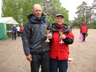 Kiireinen toukokuu on kääntymässä kohti loppuaan. KAU-Petanque seuran viimeinen yhteinen rypistys on takana, kun Helatorstaina 29.5.2014 saatiin pelattua II-SD2014 kilpailu. Mukaan saatiin kaikkiaan 15 joukkuetta, muutamien säikähdettyä sääennustetta. Mutta jäljelle jäänyt joukko oli sitäkin motivoituneempi. Edustuksia eri seuroista oli seuraavasti: MAP, BIT, KIS, KOP, RIE, KAU ja LeSi. Peluutuksesta vastasi veljeni Petri Taipalvesi ja neljä kierrosta mentiin uuden Swiss-ohjelman tukemana. Ohjelmiston hyvyys tuli selville päivän aikana ja kaikki Bushhold laskennat se otti hyvin huomioon. Ohjelmisto on aivan huippu hyvä. Vielä kun ehditään tekemään määrätyt lisäykset, on se täydellisessä kisakunnossa SM-kilpailuja varten Haminassa! Kilpailun ennakkoon oli monta kivenkovaa paria, jotka kaikki omasivat mahdollisuuden voittaa koko turnaus. Alkupelien osalta paalupaikalle pelasi MAP:n pari Sirpa ja Kari Korkeamäki puhtaalla pelillä. Yhden häviön ja kolmen voiton turvin meni jatkoon neljä joukkuetta ja kaksi kahden joukkueen voittajaa selvisi vielä A-finaaliin. A-finaalin mitallipeleissä kohtasivat Sirpa ja Kari Korkeamäki MAP saaden vastaansa Pirjo Saarelan ja Ilpo Vuorisen. Voitto Pirjolle ja Ilpolle 13-7. Toisessa parissa pelasivat Eija Suominen ja Marko Taipalvesi saaden vastaansa Taru Saarelan ja Teuvo Pajuojan. Voitto Eijalle ja Markolle 13-5. Finaalissa mentiin alku hyvinkin tasaisesti piste kerrallaan puolin ja toisin. Tilanteessa 2-2 Pirjo ja Ilpo pääsivät rokottamaan kahteen kertaan toisella kerralla 4 pistettä ja toisella 3. Tilanne 9-2 heille. Vielä yritettiin tulla, mutta viimeistä vaihdetta ei koskaan saatu päälle ja voitto Pirjolle ja Ilpolle ansaitusti 13-6. Pronssin vei Sirpa ja Kari voittaen Tarun ja Teuvon 13-10. B-Finaalin voiton ja komeat pokalit menivät Leppävaaran Sisulle parille Kaija ja Pekka Vauhkonen. Vaikka sää oli koleinen ja sateinen, niin porukka oli jälleen valmis pelaamaan mukavan pelipäivän. Yritti se aurinkokin meitä muutaman kerran muistaa, mutta tälläkertaa näin. Onnittelut kaikille menestyjille ja toivottavasti nähkään pian. KAU-Petanque kiittää ja kumartaa... Over and Out! TULOKSET: