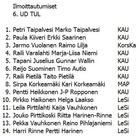 6.5.2017 pelattiin Karkkilassa kuudennen kerran Uudenmaan TUL:n duppelikilpailu. Mukaan oli ilmoittautunut 14 joukkuetta seuroista Korska, MAP, LeSi ja KAU. Kilpailu saatiin vietyä loistavassa säässä. Koko päivän aurinko lämmitti pelaajia ja pieni tuulenvire ei haitannut, vasta illalla huomasi polttaneensa kasvot päivän aikana! Tulokset: 1. Tapani Juselius KAU ja Gunnar Wallin KAU 2. Petri Taipalvesi KAU ja Marko Taipalvesi KAU 3. Jarmo Vuolanen KorsKa ja Raimo Lilja KorsKa 4. Sirpa Korkeamäki MAP ja Kari Korkeamäki MAP 5. Harri Rinne LeSi ja Pertti Harinen LeSi 6. Raili Varalahti KAU ja Marja-Liisa Niemi KAU 7. Reijo Suominen KAU ja Timo Autio KAU 8. J-P Ropponen KAU ja Pentti Heikkonen KAU (B-sarjan 1.) 9. Paula Kiiveri KAU ja Erkki Saarinen KAU 10. Raili Pietilä KAU ja Taito Pietilä KAU 11. Pekka Vauhkonen LeSi ja Reino Pihlajaniemi LeSi 12. Leila Pirttilahti LeSi ja Kaija Vauhkonen LeSi 13. Pirkko Haikonen LeSi ja Helga Laakso LeSi 14. Jouko Pirttikoski LeSi ja Riitta Harinen-Rinne LeSi |