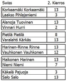 Kilpailun tulokset: A-sarja 1. Jaana Alanoja ja Veijo Tuovinen LIN 2. Sirkka-Liisa Vinnari ja Markku Hurri LIN/MAP 3. Raili Varalahti ja Alpo Kärkäs KAU 4. Tiia Salo ja Jyrki Salo PSC/HBY 5. Raili Pietilä ja Taito Pietilä KAU 6. Riitta Harinen-Rinne ja Harri Rinne LeSi 7. Helga Laakso ja Reino Pihlajaniemi LeSi 8. Sirpa Korkeamäki ja Kari Korkeamäki MAP 9. Pirkko Haikonen ja Pertti Harinen LeSi (B-sarja 1.) 10. Kaija Vauhkonen ja Pekka Vauhkonen LeSi 11. Marja-Liisa Niemi ja Teuvo Niemi KAU 12. Meeri Käkelä ja Teuvo Pajuoja LOI