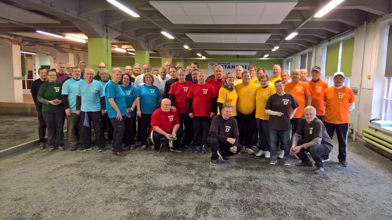 25.11.2017 pelattiin Loimaalla Finnish Veterans 2017, vuoden viimeinen arvokilpailu. Pelisysteemi oli samanlainen kuin aikaisemminkin, 8 kapteeni joukkuetta ja 8 haastajajoukkuetta. KAU-Petanquelta mukaan kilpailuun saatiin joukkue Raili Varalahti, Alpo Kärkäs ja Erkki Saarinen. Lisäksi yhdessä kapteeni joukkueessa pelasi Gunnar Wallin. Railin, Alpon ja Erkkin joukkue pelasivat alkupeleistä yhden voiton kolmesta ja lopputulokseksi tuli Swiss-sijoitus 11. Kunun joukkue pelasi myös yhden voiton ja loppusijoitus heille 9. Tämän vuoden voiton vei kapteenijoukkue Henri Palmqvist, Mirva Näsilä ja Mikko Lehto. Hopea Markku Nieminen, Harry Uschanov ja Matti Haapanen. Pronssi Jari Suominen, Rauno Käpynen ja Reijo Taka-Eilola. Paras haastaja joukkue oli 4. Kati Nieminen, Helena Kuivasniemi-Lehti ja Petri Lohman. |